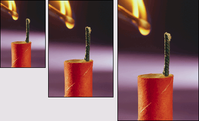 Рис. 1.10. Представление изображения на экранах с разным разрешением. На рисунке показаны экранные образы одного изображения, выведенные на мониторы (слева направо) с разрешением 96, 72 и 60 dpi