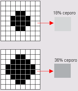 Если печать по принципу непрерывной передачи тона можно сравнить с работой малярного валика или краскопультом, то устройства, использующие полутоновое растрирование, имеют в своем арсенале только кисточку-нулевку и скромную палитру не более чем из четырех красок.