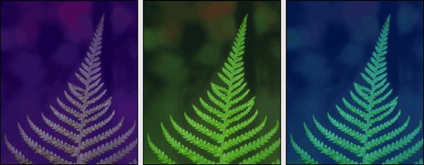 На рис. 1.12 показаны три канала одной фотографии, сканированной в режиме RGB. Оригинал представляет собой сильно выцветшую фотографию, цвета которой поблекли настолько, что его можно принять за полутоновый образец. Легко заметить небольшую разницу между каналами красного и зеленого цветов. Канал синего цвета отличается от остальных настолько сильно, что его можно принять за совершенно независимый образец.