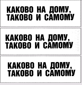 Верхняя надпись, показанная на рис. 1.16, обработана с высокой яркостью. Можно заметить, что это привело к потере связности некоторых букв. Обработка такого образца может привести к появлению неправильно распознанных символов. Средний вариант оцифрован при низких значениях яркости, что привело к захвату