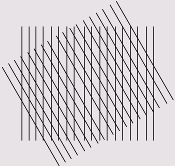 Рис. 1.17. Муар, вызванный наложением двух регулярных сеток. Взаимодействие двух периодических структур влечет за собой появление периодического рисунка, который не может быть объяснен простым сложением исходных объектов