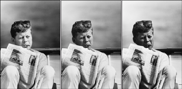 Рис. 3.26. Исходное состояние изображения в сравнении с обработанным. Оригинал увеличен в четыре раза