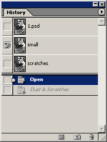 Рис. 3.38. Вид палитры History, настроенной на удаление мелких дефектов