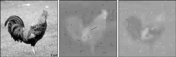 Способ, рассмотренный в данном разделе, хорошо справляется с техническими дефектами цветных изображений определенного типа. Это множественные повреждения небольшого размера, хаотично разбросанные по всей поверхности изображения. Подобные артефакты часто вызываются зашумленностью видеотракта оцифровывающего устройства - сканера или цифровой камеры. Метод оказывается несостоятельным при обработке локальных макродефектов значительного размера, которые лишены хроматической составляющей.