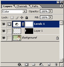 Layer =>New Adjustment Layer ro Levels (Слой = >