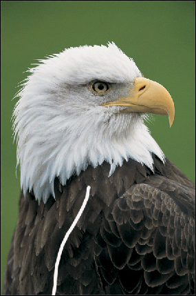 Рассмотрим работу с инструментом на примере изображения, показанного на рис. 3.6. Исправление такого дефекта традиционными средствами потребовало бы от оператора значительных усилий. Оперение орла- это область с ярко выраженной структурой, поэтому любая неточность выбора донорской области или погрешности совмещения будут хорошо заметны на ее фоне. Инструмент