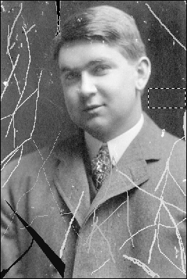 Состояние старой фотографии, представленной на рис. 3.14, без преувеличения можно назвать катастрофическим. Многочисленные сколы и царапины, плотно покрывшие всю поверхность снимка, делают сомнительными перспективы успешной обработки этого образца. В этой тяжелой ситуации представляются бессмысленными любые ухищрения со слоями, каналами и режимами наложения. Кажется, что впереди утомительная многочасовая процедура, монотонность которой способна оживить только периодическая смена инструментов технической ретуши.