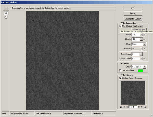 3. Создадим новую текстуру на основе образца, скопированного в буфер обмена. Для этого активизируем опцию