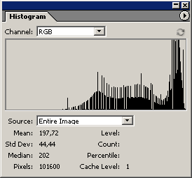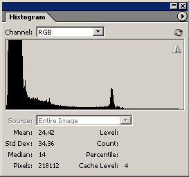 Темная часть горизонтальной и вертикальной шкал соответствует точкам с низкой светимостью, светлая часть представляет яркие пикселы. По умолчанию для цветовой модели RGB единицами измерения яркостей служат пункты в диапазоне от 0 до 255, где черный цвет имеет минимальную нулевую яркость, а белый цвет - максимальную, равную 255. Чем светлее точка, тем дальше от начала координат она располагается на оси. Если щелкнуть мышкой по горизонтальной шкале, то упорядоченность яркост-ных значений изменится на противоположную. В этом случае светлые точки будут располагаться ближе к началу координат, а яркость измеряется в процентах. Яркость черного цвета равняется 100 процентам, яркость белого цвета— 0 процентам. Этот способ представления предпочитают пользователи, которые готовят изображения для вывода на печать. Он принимается по умолчанию для изображений, представленных в модели CMYK, и полутоновых изображений.