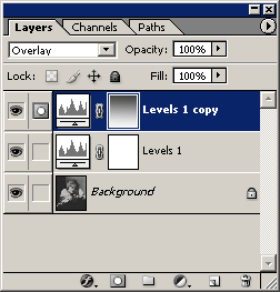 4. Сделаем активной маску слоя Levels 1copy. Для этого достаточно щелкнуть по ее пиктограмме в палитре