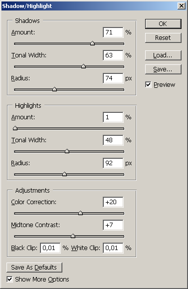 Рис. 4.84. Настройки команды Shadow/Highlight