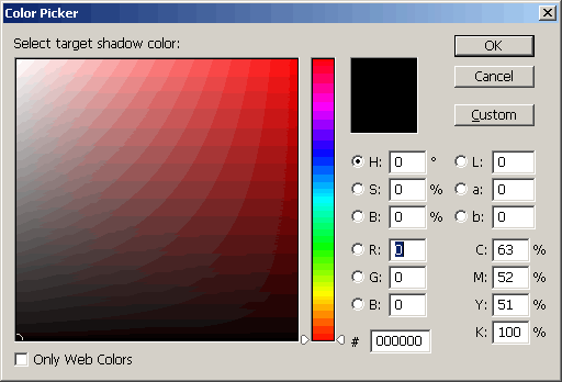Color Picker введем новые значения цветовых координат для черного цвета (см. рис. 4.17). Неплохим выбором будут следующие значения: R = 13, G = 13, В = 13.
