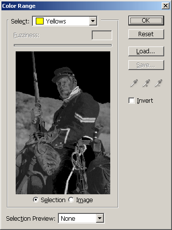 6. Для ослабления желтой компоненты изображения надо выделить все области с преобладанием этой краски. С поставленной задачей лучше всего справится команда
