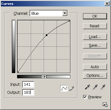 9. В диалоговом окне этой команды сделаем активным канал Blue. Этот цвет является дополнительным для желтого, поэтому его усиление в выделенной области приведет к ослаблению комплиментарного цвета.
