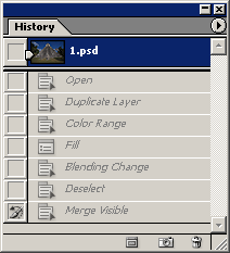 6. Выведем на экран палитру History. В нее заносятся все действия, выполненные с момента открытия графического файла. Пометим в палитре пункт