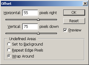 Filter => Other => Offset. В полях Horizontal и Vertical зададим значения, равные половине ширины (55) и высоты изображения (70). Активизируем опцию