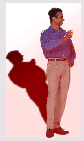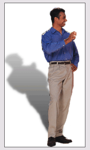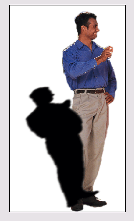 Рассмотрим самую простую ситуацию, когда центральный объект сцены освещается единственным источником света, который расположен за левым плечом наблюдателя. Возьмем в качестве примера изображение одиночной мужской фигуры, показанное на рис. 6.41. Поскольку за персонажем нет никаких объектов, то тень должна падать на горизонтальное основание сцены. Не требуется художественного образования, чтобы составить представление об образе правдоподобной тени. По мере удаления от своего оригинала она должна терять плотность и четкость границы. Обе эти задачи допускают эффективное и разнообразное решение в Photoshop.