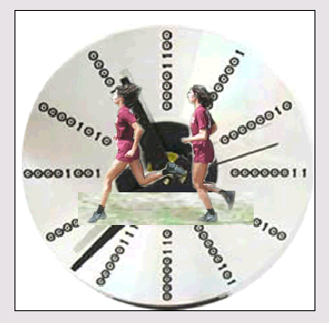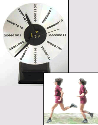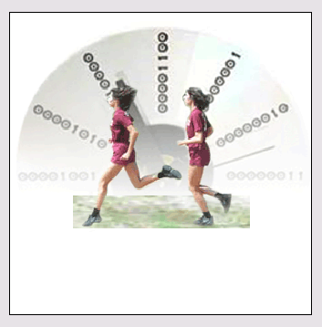 В качестве примера возьмем два изображения, показанные на рис. 6.52, и построим из этого материала коллаж, в котором распределение теней играет принципиальную роль. Фотография бегунов и изображение часов лежат в заготовке на разных слоях.