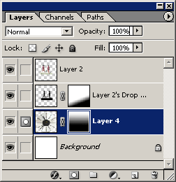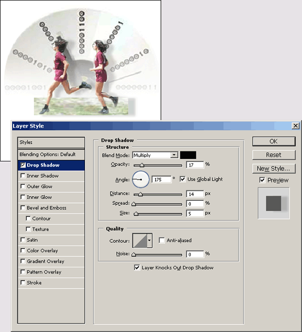 5. Сделаем активным верхний слой и создадим для него стиль Drop Shadow (Падающая тень). Штатный способ решения этой задачи - это команда главного меню