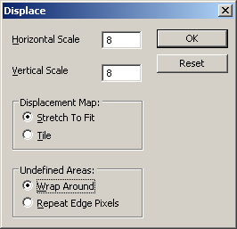 13. Выполним команду Filter => Distort => Displace (Фильтр => Искажение => Смещение). В диалоговом окне