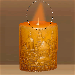 9. Создадим еще один слой. Он нужен для хранения ореола, который всегда дает локальный источник света, подобный свече. На новом слое нарисуем выделение в форме круга, центр которого совпадает с центром пламени. Размеры круга должны выходить за пределы пламени.