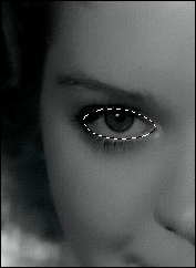 1. Создадим выделение левого глаза. Для построения точной границы требуется установить значительное увеличение снимка и использовать геометрические средства создания маркировок, например