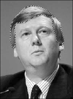 7. Удалим все пряди и отдельные волоски вокруг головы бывшего премьера. Задача решается легко, поскольку фон головы является почти полностью однородным. И последнее, включим визуализацию верхнего слоя (рис. 6.137).