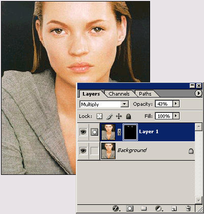 Multiply. В результате плотность тонов оригинала значительно увеличится, причем этот эффект распространится на все лицо.