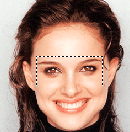 4. Такая тонкая работа, как ретушь глаз, требует полного визуального контроля над результатом. Поэтому целесообразно временно спрятать границу выделения. Для этого надо воспользоваться комбинацией клавиш Ctrl+H.