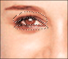 14. Обработаем инструментом темные области глаз. Это локальные фрагменты зрачка и, что самое важное, темная узкая полоса верхнего и нижнего века. Чтобы защитить соседние области, предварительно построим выделение этих областей (рис. 6.171).