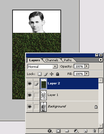 Рис. 6.5. Макетная группа в собранном состоянии. Режим Normal наложения верхнего слоя дает неудовлетворительные результаты, поскольку приводит к потере деталей на изображении пиджака