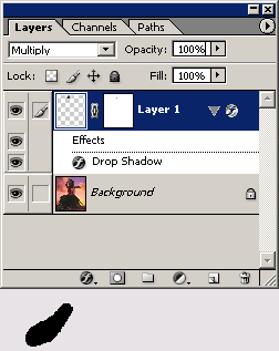 Рис. 6.8. Состояние палитры слоев и увеличенное изображение маски слоя